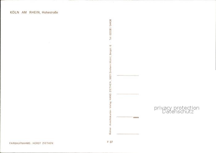 72454433 Koeln Rhein Hohenstrasse postalisch nicht gelaufen Erhaltung siehe scans KatCode: 11110005315000