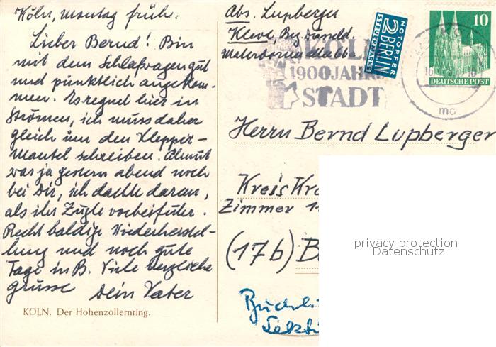 73800283 alte Postkarte Koeln Rhein Hohenzollernring postalisch gelaufen Erhaltung siehe scans [WerneD78] KatCode: 11110005315000