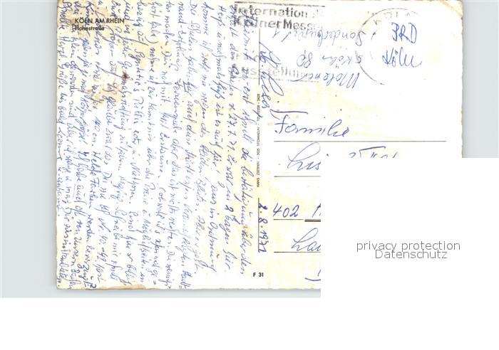 72535909 alte Postkarte Koeln Rhein Hohestrasse Fussgaengerzone am Abend postalisch gelaufen Erhaltung siehe scans [FriedD77 kt118box] KatCode: 11110005315000