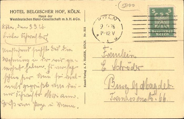 41394418 Koeln Rhein Hotel Bergischer Hof Bierstall postalisch gelaufen gute Erhaltung Alte Ansichtskarte Postkarte alte Postkarte hz_L Katcode 11110005315000