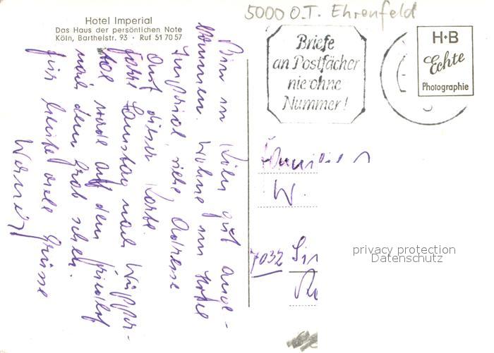 33702841 alte Postkarte Koeln Rhein Hotel Imperial postalisch gelaufen Erhaltung siehe scans [WerneD78] KatCode: 11110005315000