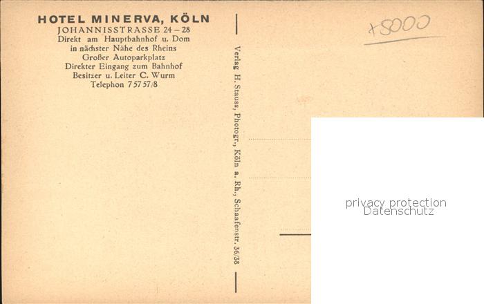 42584799 Koeln Rhein Hotel Minerva postalisch nicht gelaufen Erhaltung siehe scans [WerneD78] KatCode: 11110005315000