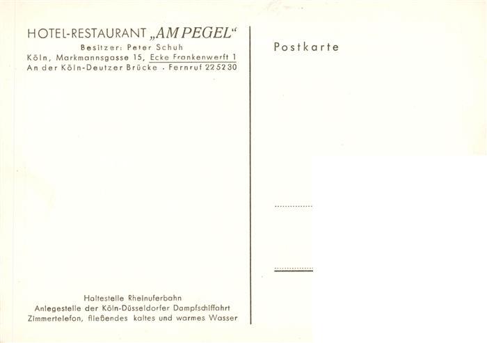 73897652 Koeln Rhein Hotel Restaurant Am Pegel Zeichnung postalisch nicht gelaufen Erhaltung siehe scans [FriedD77] KatCode: 11110005315000
