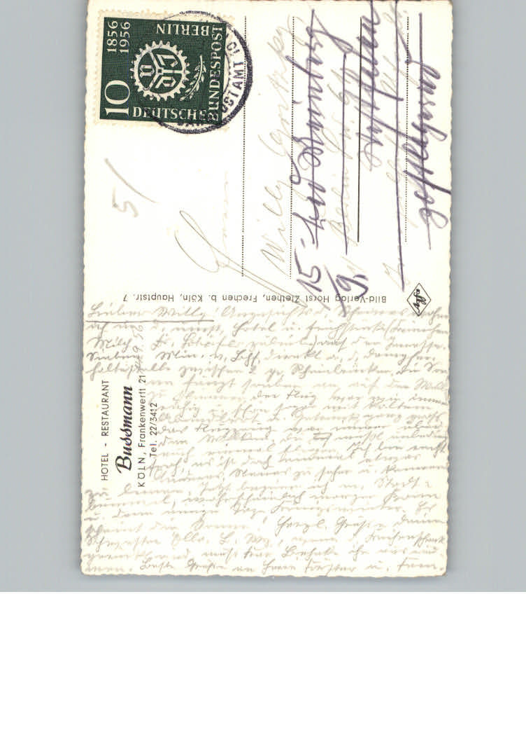 31136657 Koeln Rhein Hotel – Restaurant Bussmann postalisch nicht gelaufen KatCode: 11110005315000