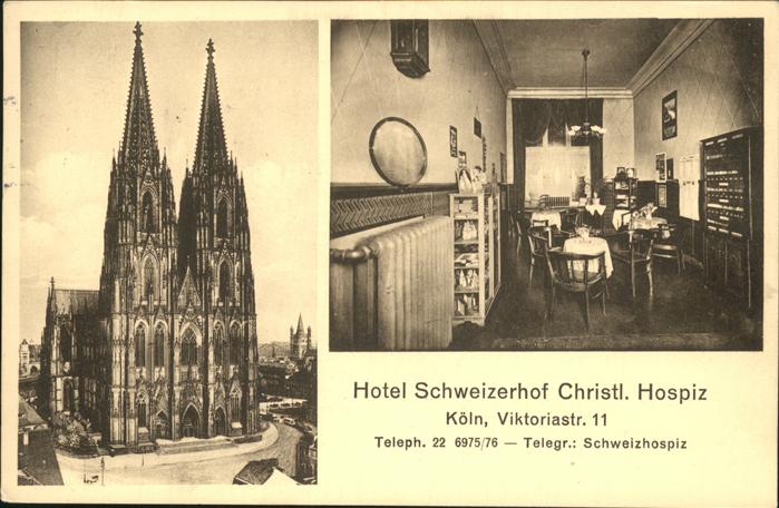 41300231 KoeLN Rhein Hotel Schweizerhof Christl. Hospiz postalisch gelaufen gute Erhaltung Alte Ansichtskarte Postkarte alte Postkarte hz_L Katcode 11110005315000