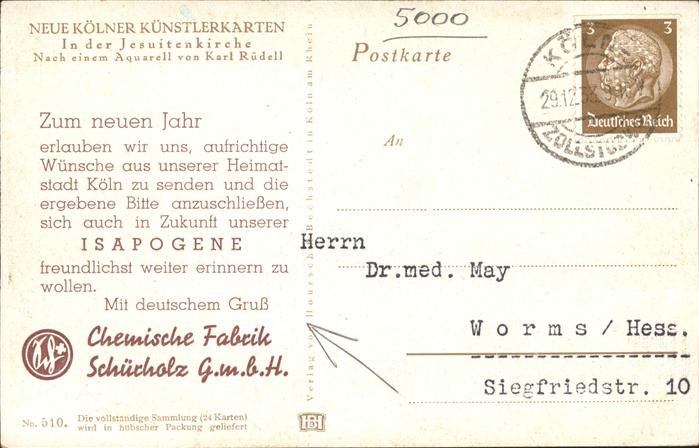 41396558 Koeln Rhein Jesuitenkirche Serie Neue Kölner Künstlerkarten Aquarell Karl Rüdell KatCode 11110005315000