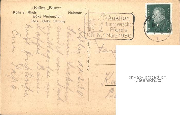 31715075 alte Postkarte Koeln Rhein Kaffee Bauer postalisch gelaufen Erhaltung siehe scans KatCode: 11110005315000