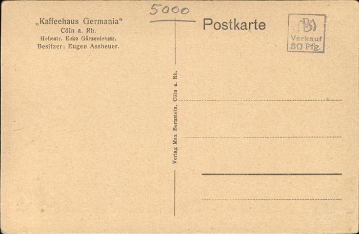41394488 Koeln Rhein Kaffeehaus Germania innen Hohestrasse Eugen Assheuer KatCode 11110005315000