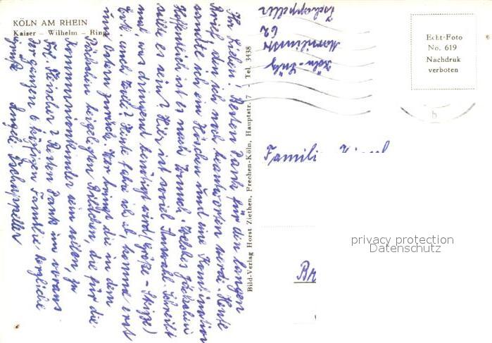 73294939 alte Postkarte Koeln Rhein Kaiser-Wilhelm-Ring postalisch gelaufen Erhaltung siehe scans [PaolaD17] KatCode: 11110005315000
