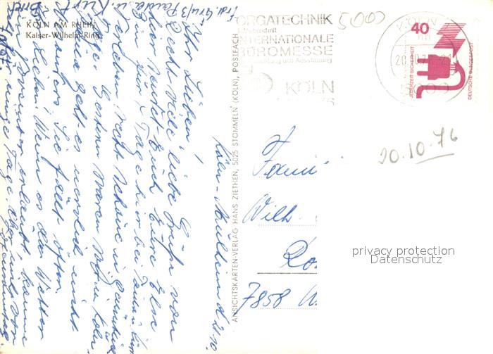 73070220 alte Postkarte Koeln Rhein Kaiser-Wilhelm-Ring postalisch gelaufen Erhaltung siehe scans [NatalD47] KatCode: 11110005315000