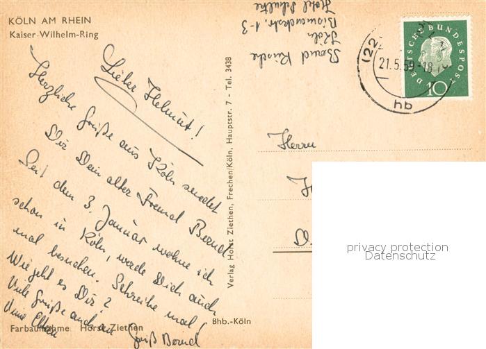 73813551 alte Postkarte Koeln Rhein Kaiser Wilhelm Ring Brunnen postalisch gelaufen Erhaltung siehe scans [WerneD78] KatCode: 11110005315000