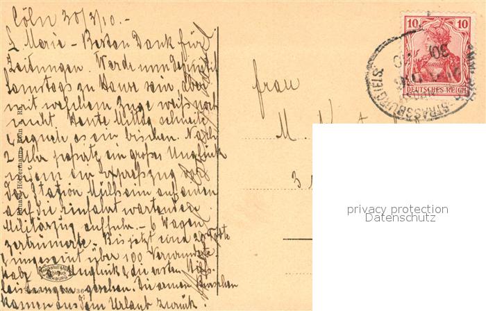 73298605 alte Postkarte Koeln Rhein Kaiser Wilhelm Ring Denkmal postalisch gelaufen Bahnpost Erhaltung siehe scans [FriedD77] KatCode: 11110005315000