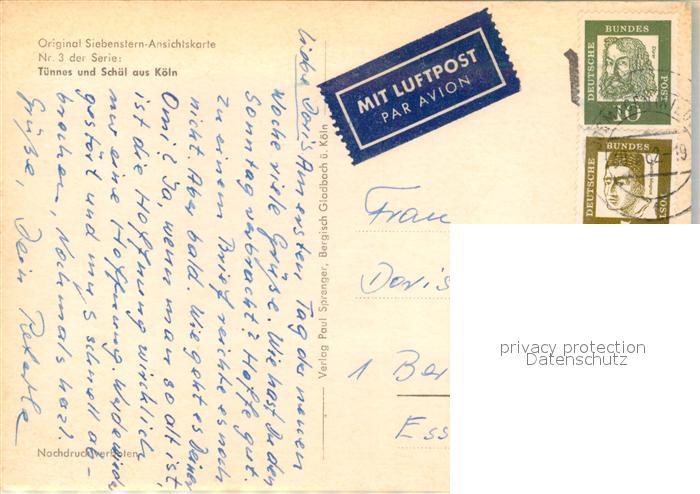 43369315 alte Postkarte Koeln Rhein Karikaturen Koelner Dom Original Siebenstern Ansichtskarte Nr 3 Serie Tuennes und Schael aus Koeln postalisch gelaufen Erhaltung siehe scans [FriedD77] KatCode: 11110005315000
