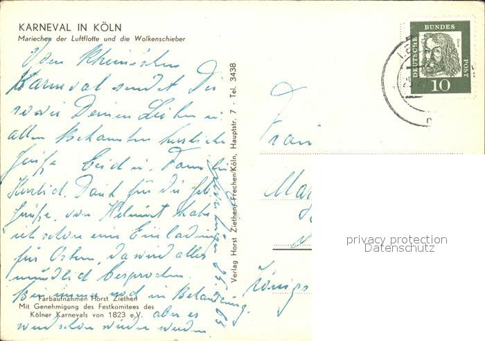 72410366 alte Postkarte Koeln Rhein Karneval Mariechen und Wolkenschieber postalisch gelaufen Erhaltung siehe scans KatCode: 11110005315000
