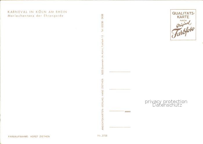 72506274 Koeln Rhein Karneval Mariechentanz Ehrengarde postalisch nicht gelaufen Erhaltung siehe scans KatCode: 11110005315000