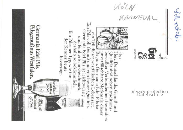 74014015 Koeln Rhein Karneval Prinz Ralf III Germania Edel Pils Werbung Getraenke postalisch nicht gelaufen Werbekarte (keine Postkarte) Erhaltung siehe scans [FriedD77] KatCode: 11110005315000