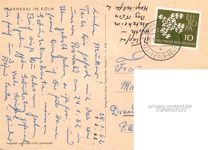 72624809 alte Postkarte Koeln Rhein Karnevalstreiben Dom postalisch gelaufen Erhaltung siehe scans [WerneD78] KatCode: 11110005315000