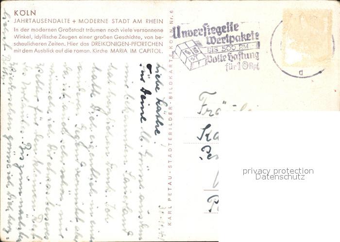 72425837 alte Postkarte Koeln Rhein Kirche Maria im Capitol Dreikoenigen Pfoertchen postalisch gelaufen Erhaltung siehe scans KatCode: 11110005315000