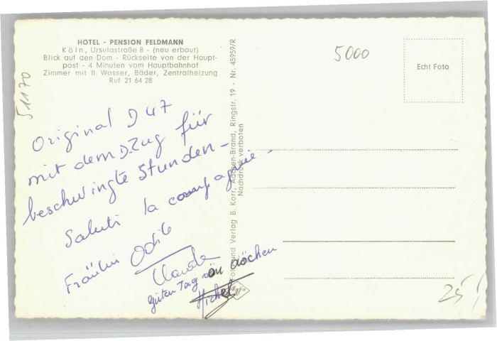 40688652 Koeln Rhein Köln Hotel Pension Feldmann KatCode 11110005315000