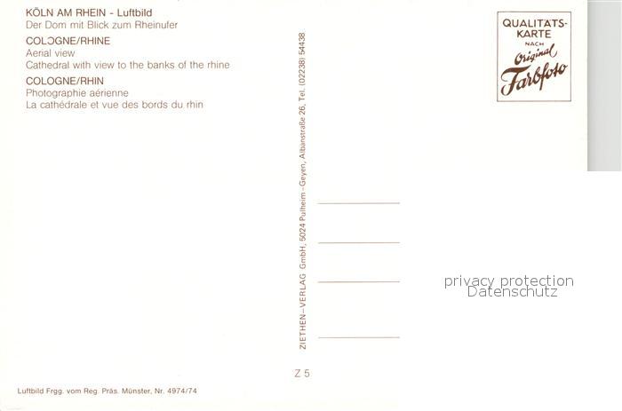 73162576 Koeln Rhein Koelner Dom mit Blick zum Rheinufer Fliegeraufnahme postalisch nicht gelaufen Erhaltung siehe scans [FriedD77] KatCode: 11110005315000