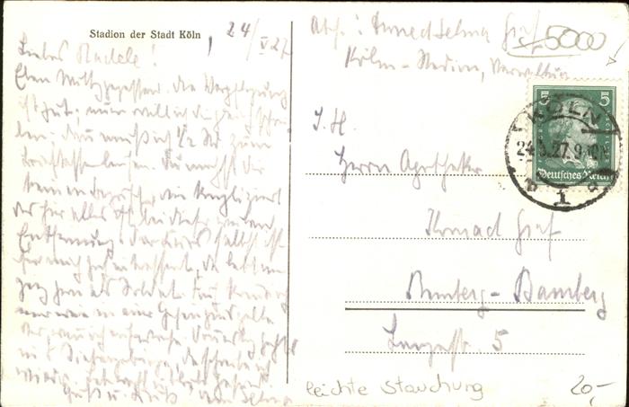 41399259 alte Postkarte Koeln Rhein Koelner Stadion Lageplan postalisch gelaufen Erhaltung mit Maengel KatCode: 11110005315000