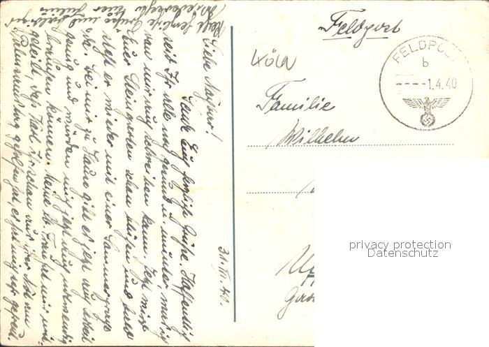32036379 alte Postkarte Koeln Rhein Koelnisch Wasser NZ3 postalisch gelaufen Feldpost Erhaltung siehe scans KatCode: 11110005315000