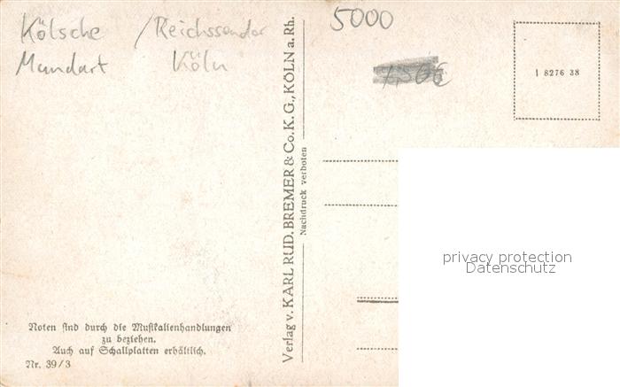 33701296 Koeln Rhein Koelsche Reichssender Mundart postalisch nicht gelaufen Erhaltung siehe scans [WerneD78] KatCode: 11110005315000