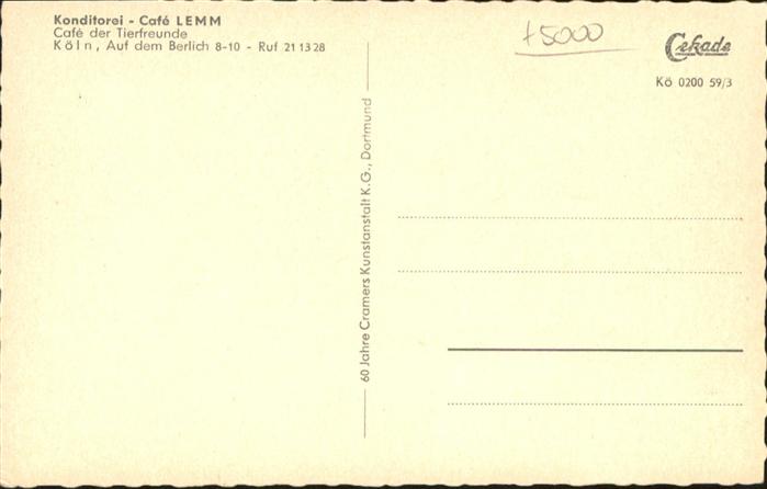 40987984 Koeln Rhein Konditorei Cafe Lemm Papagei KatCode 11110005315000