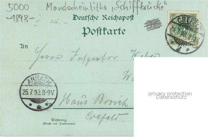 73703906 alte Postkarte Koeln Rhein Mondscheinlitho Schiffbruecke postalisch gelaufen Erhaltung siehe scans [LiesaD40] KatCode: 11110005315000