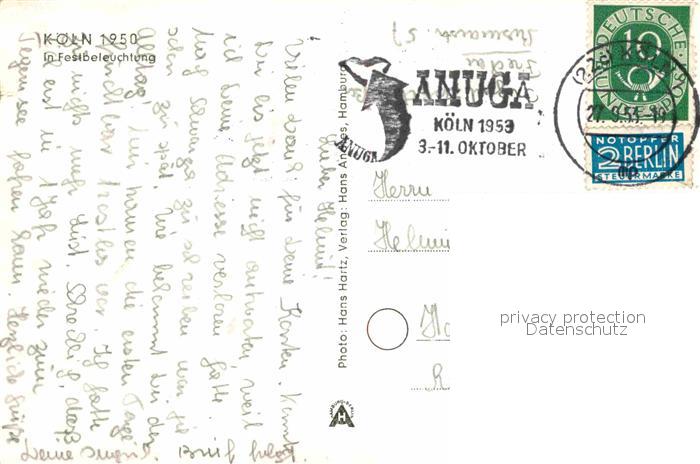 72639448 alte Postkarte Koeln Rhein Nachtaufnahme Festbeleuchtung postalisch gelaufen Erhaltung siehe scans [KathaD79] KatCode: 11110005315000