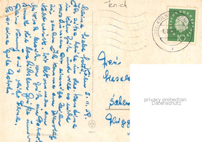 73013172 alte Postkarte Koeln Rhein Neumarkt postalisch gelaufen Erhaltung siehe scans [KathaD81] KatCode: 11110005315000
