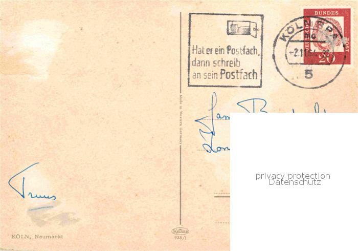 72655098 alte Postkarte Koeln Rhein Neumarkt postalisch gelaufen Erhaltung siehe scans [LiesaD40] KatCode: 11110005315000