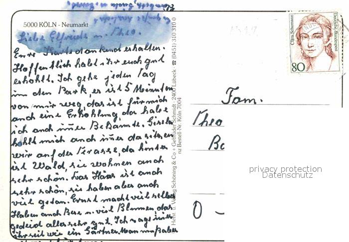 72617483 alte Postkarte Koeln Rhein Neumarkt postalisch gelaufen Erhaltung siehe scans [WerneD78] KatCode: 11110005315000