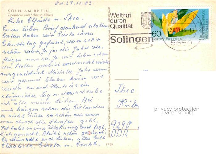 72617485 alte Postkarte Koeln Rhein Opernhaus und Schauspielhaus postalisch gelaufen Erhaltung siehe scans [WerneD78] KatCode: 11110005315000