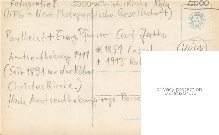 33701295 Koeln Rhein Pantheist und Ev Pfarrer Carl Jatho postalisch nicht gelaufen Erhaltung siehe scans [WerneD78] KatCode: 11110005315000