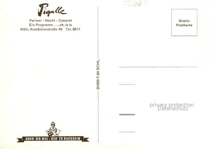 73868906 Koeln Rhein Pigalle Pariser Nacht Cabaret postalisch nicht gelaufen Erhaltung siehe scans [WerneD78] KatCode: 11110005315000
