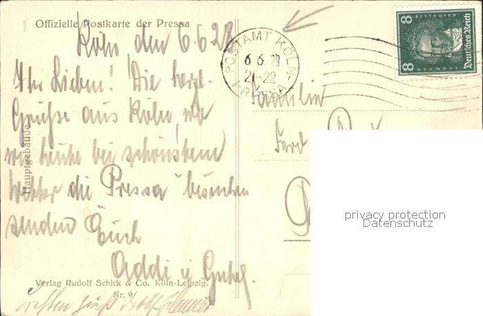 71570531 alte Postkarte Koeln Rhein Pressagelaende postalisch gelaufen KatCode: 11110005315000