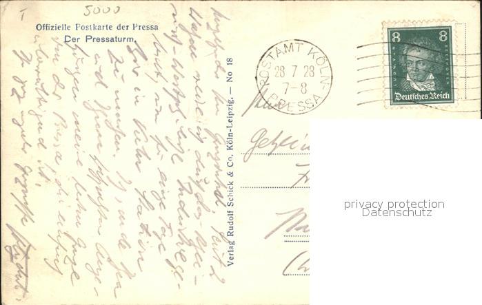 71570532 alte Postkarte Koeln Rhein Pressaturm postalisch gelaufen Erhaltung siehe scans KatCode: 11110005315000