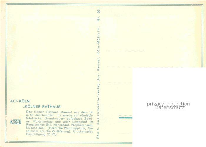 72771203 Koeln Rhein Rathaus postalisch nicht gelaufen Erhaltung siehe scans [WerneD78] KatCode: 11110005315000
