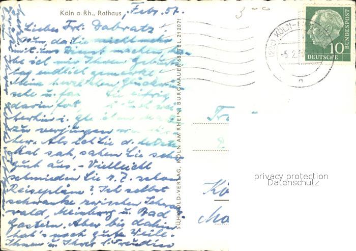 72405055 alte Postkarte Koeln Rhein Rathaus Brunnen postalisch gelaufen Erhaltung siehe scans KatCode: 11110005315000