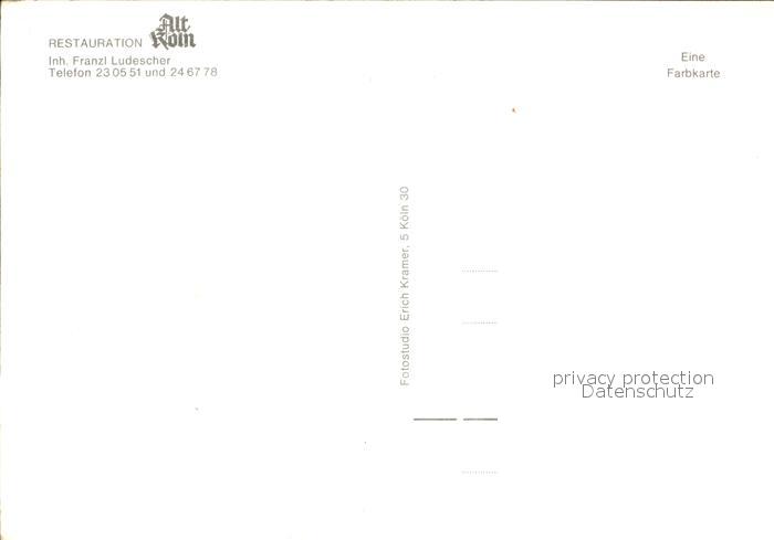 72506260 Koeln Rhein Restaurant Alt Koeln am Dom postalisch nicht gelaufen Erhaltung siehe scans KatCode: 11110005315000