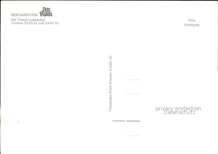 72506259 Koeln Rhein Restaurant Alt Koeln Zunftstuben postalisch nicht gelaufen Erhaltung siehe scans KatCode: 11110005315000