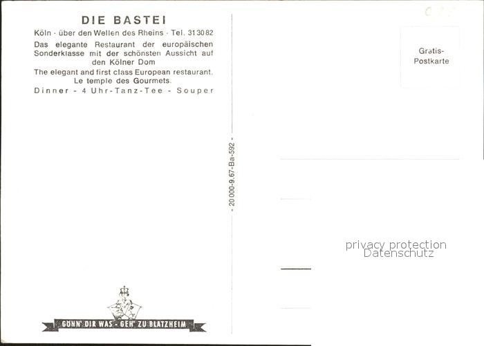 72063565 Koeln Rhein Restaurant Die Bastei postalisch nicht gelaufen Erhaltung siehe scans KatCode: 11110005315000