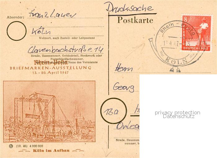 73853056 Koeln Rhein Rhein Posta Briefmarken Ausstellung postalisch nicht gelaufen Erhaltung siehe scans [WerneD78] KatCode: 11110005315000