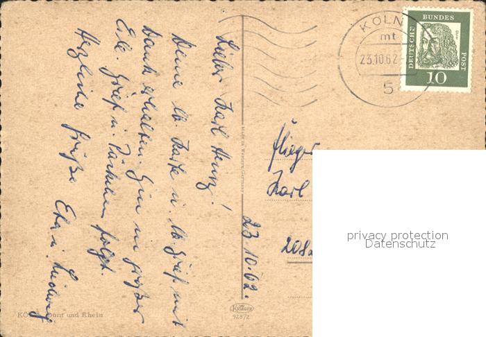 72371555 alte Postkarte Koeln Rhein Rhein und Dom mit Anlegestelle postalisch gelaufen Erhaltung siehe scans KatCode: 11110005315000