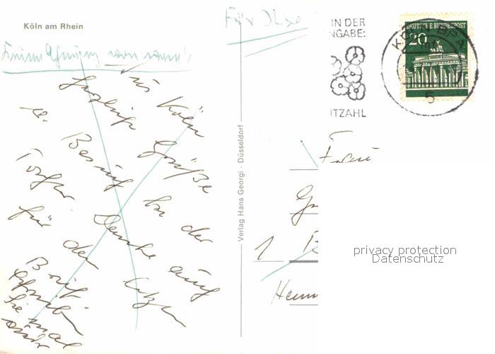 72727030 alte Postkarte Koeln Rhein Rheinbruecke Dom Springbrunnen Faehre Torburg postalisch gelaufen Erhaltung siehe scans [FriedD77] KatCode: 11110005315000