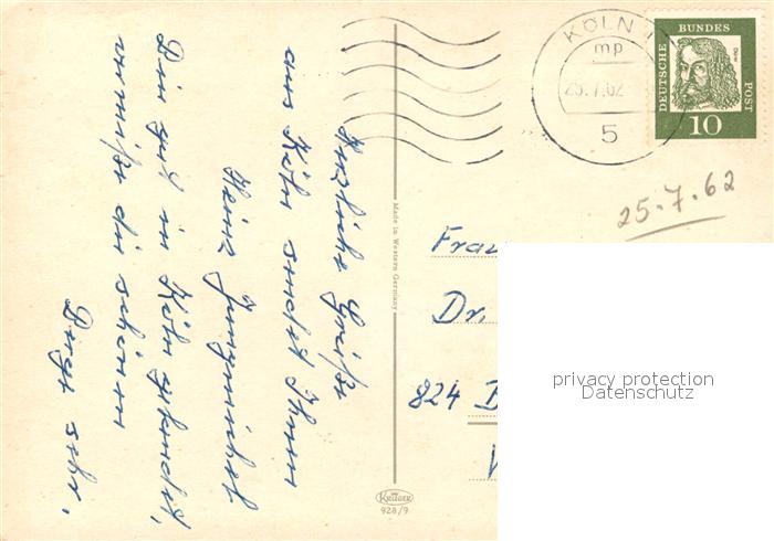 73150238 alte Postkarte Koeln Rhein Rheinbruecke Koelner Dom Platz Tor Opernhaus Bahnhof Wappen postalisch gelaufen Erhaltung siehe scans [FriedD77] KatCode: 11110005315000