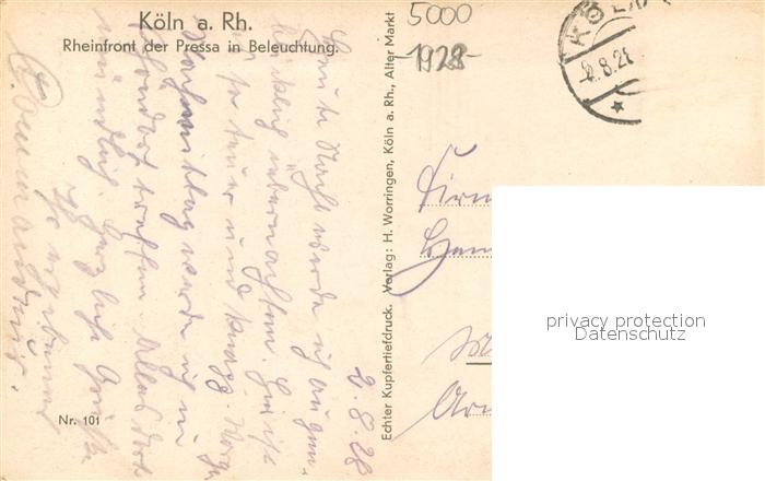 73694048 alte Postkarte Koeln Rhein Rheinfront der Pressa in Beleuchtung postalisch gelaufen Erhaltung siehe scans [WerneD78] KatCode: 11110005315000