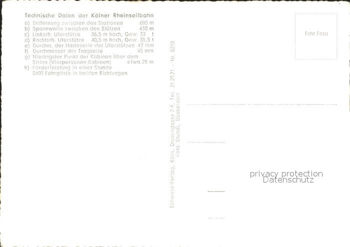 72079228 Koeln Rhein Rheinseilbahn postalisch nicht gelaufen Erhaltung siehe scans KatCode: 11110005315000