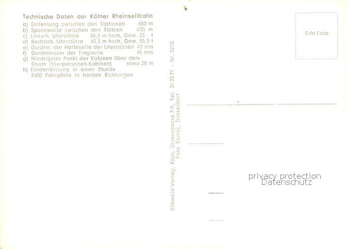 73661235 Koeln Rhein Rheinseilbahn postalisch nicht gelaufen Erhaltung siehe scans [WerneD78] Wern Katcode 11110005315000